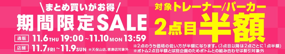 ※トレーナー2点目半額とは別企画のためトレーナーとの組み合わせは割引対象外