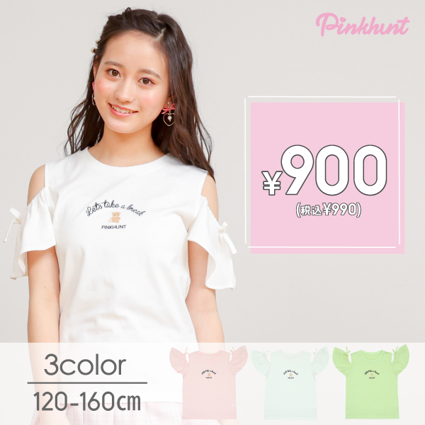 3/2まで税抜900円 SALE PINKHUNT 肩出しフレア袖Tシャツ 6972K
