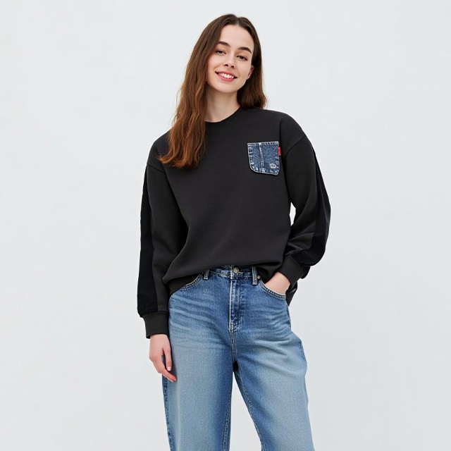 デニム素材の胸ポケットがさりげないアクセントになって、おしゃれ度アップ★
