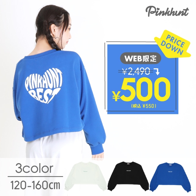 2/2まで税抜500円 SALE PINKHUNT WEB限定 ハートロゴショート丈トレーナー 0034K