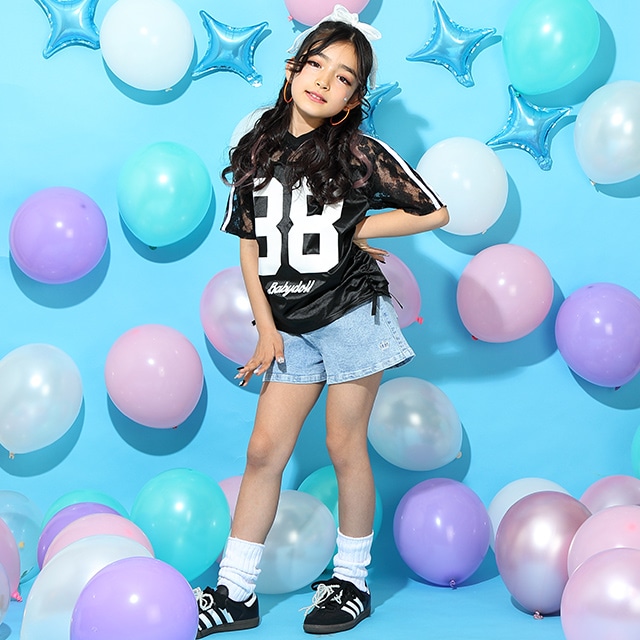 ユニフォーム風デザインで甘めのスポーティスタイルに♪