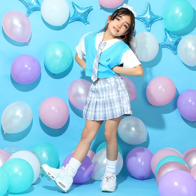 ※コーディネートに使用している「チェックスカート風ショートパンツ0347K」にはベルトループがついておりませんのでご注意ください。