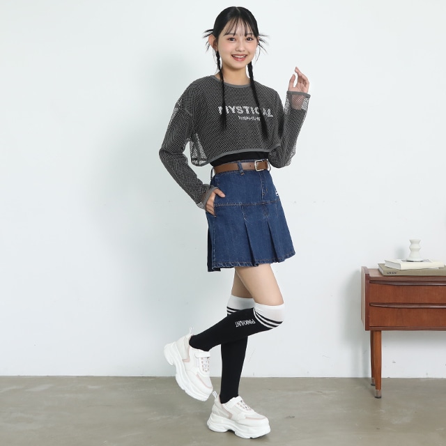 PINKHUNT ベルト付き切替プリーツスカート 0787K