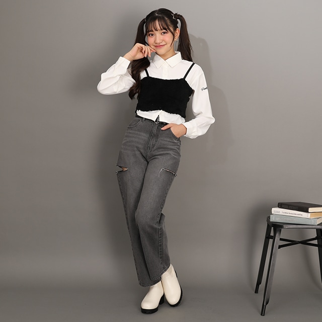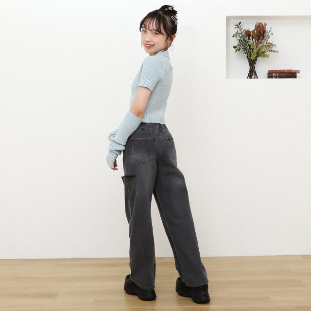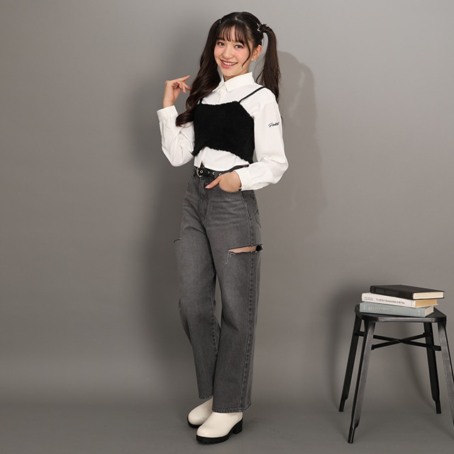 PINKHUNT ハートバックルベルト付きデニムロングパンツ 0792K