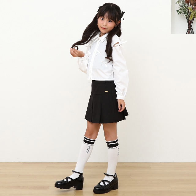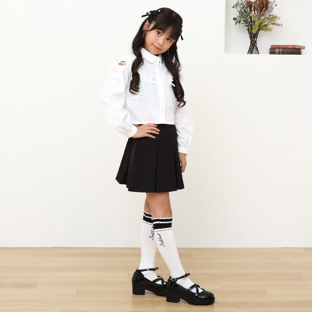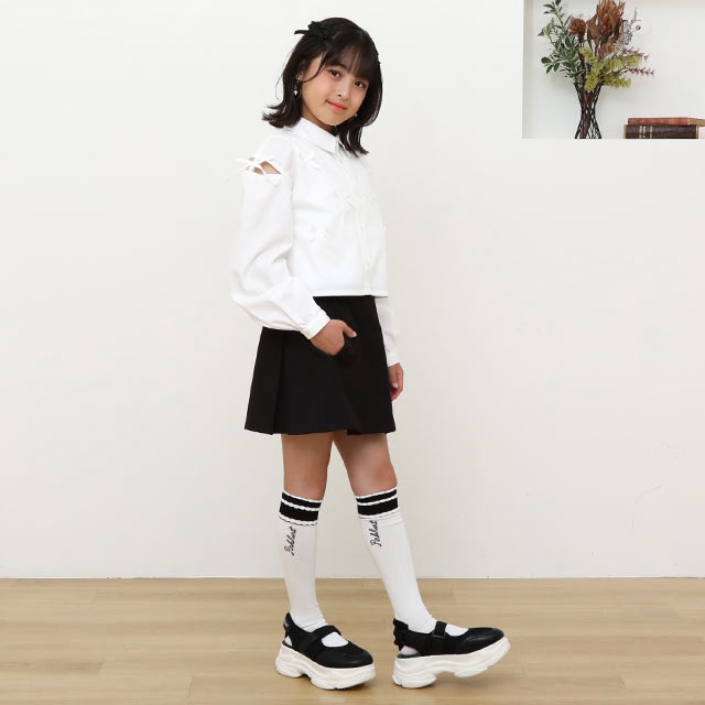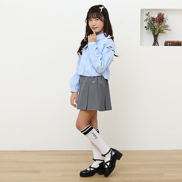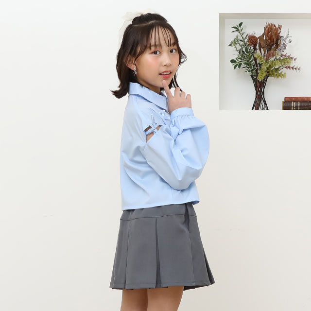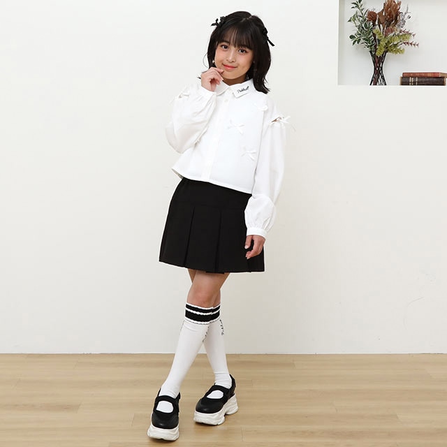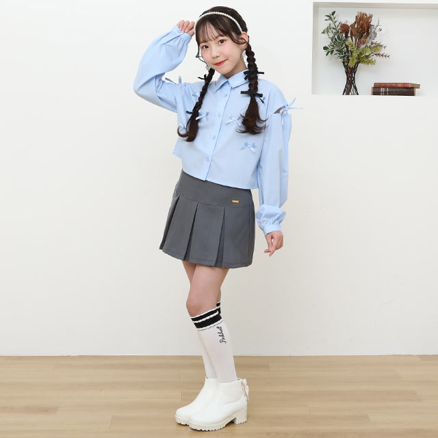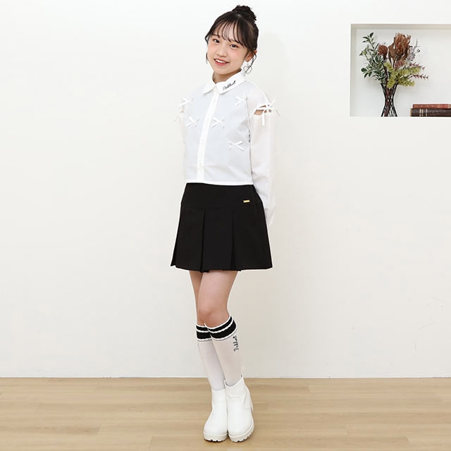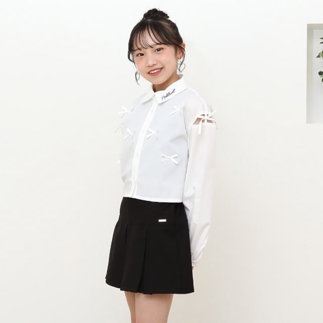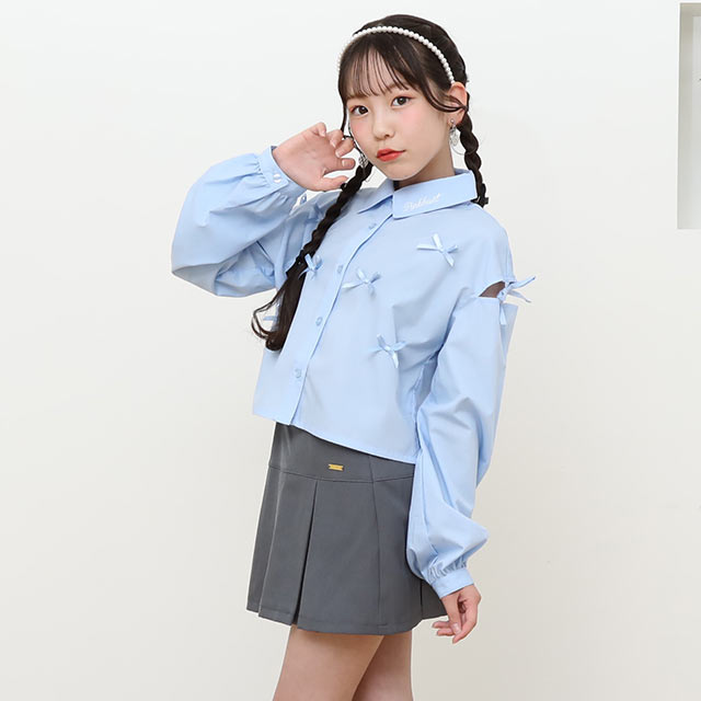 【ネコポス】対応可 PINKHUNT リボン肩あきクロップドシャツ 0794K
