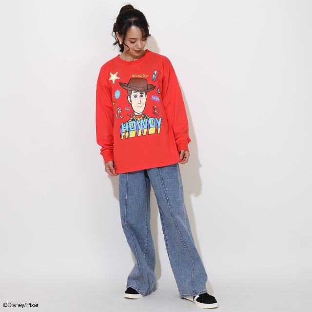 明るく元気なイメージのビビッドカラーが目を惹くトイ・ストーリーのロングTシャツ♪