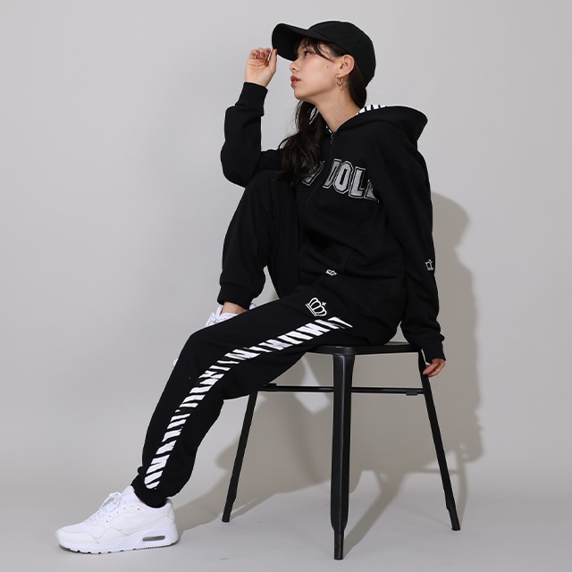 同柄ジップパーカーとのセットアップも可能で、存在感抜群のコーデが完成★