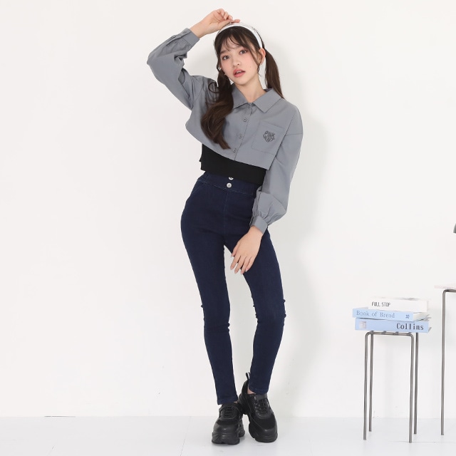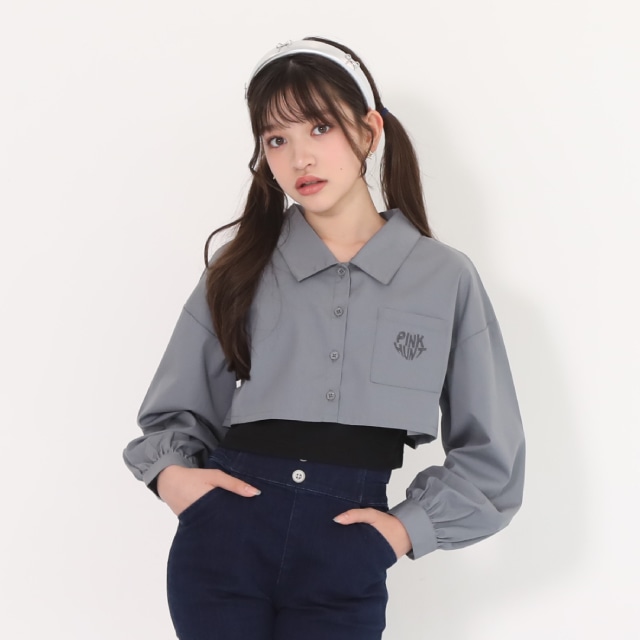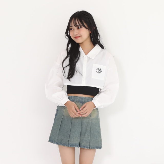 【ネコポス】一部対応可 PINKHUNT タンクトップ付きショート丈シャツ 0873K