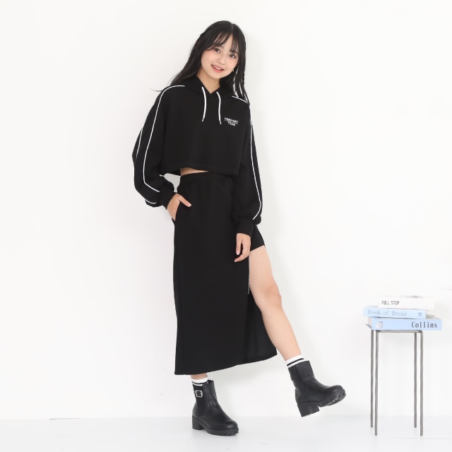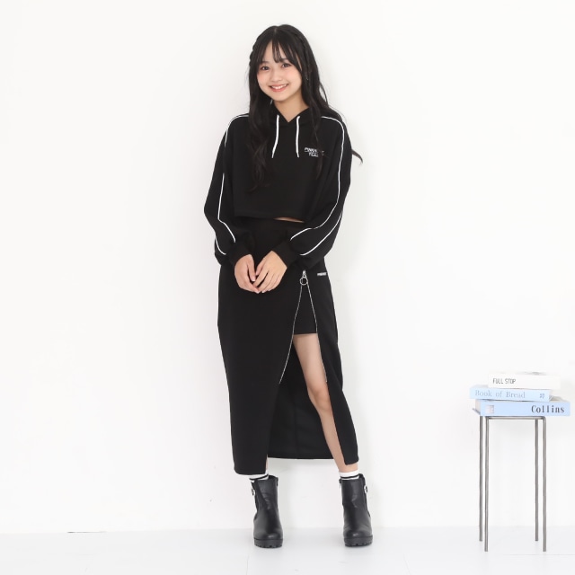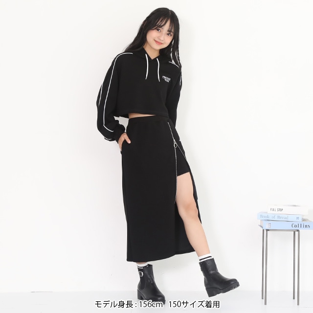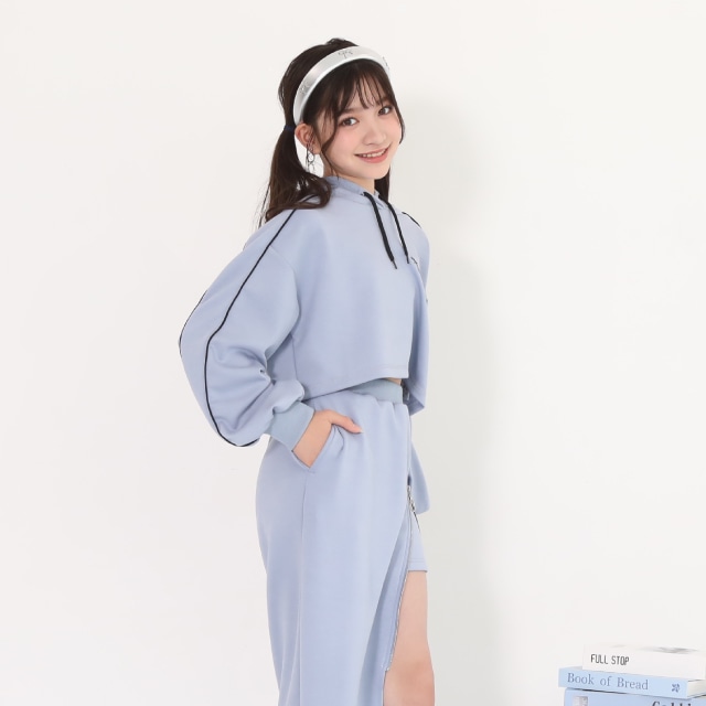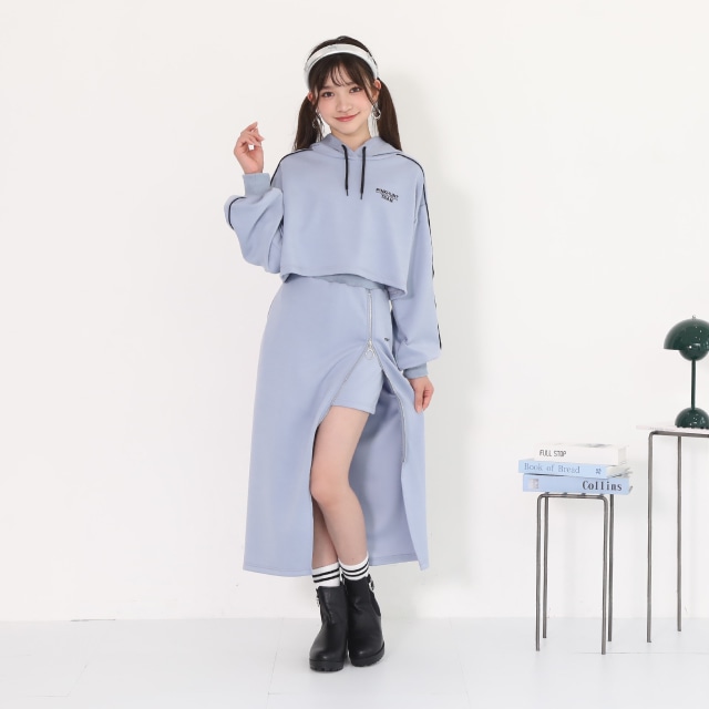 セットアップになるショート丈パーカーと合わせるのがおすすめ♪