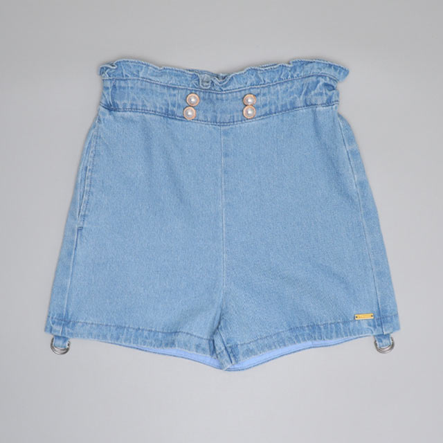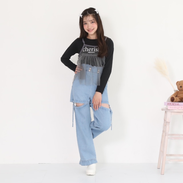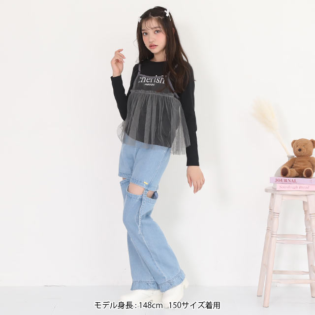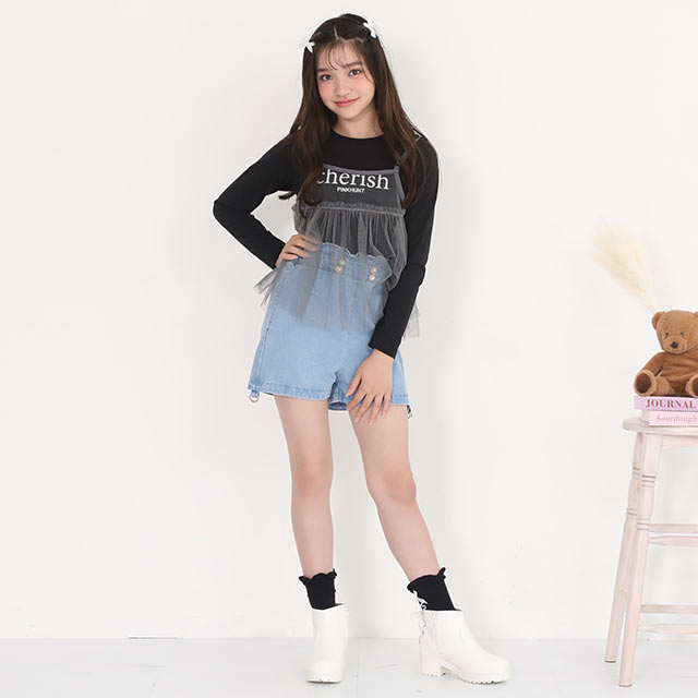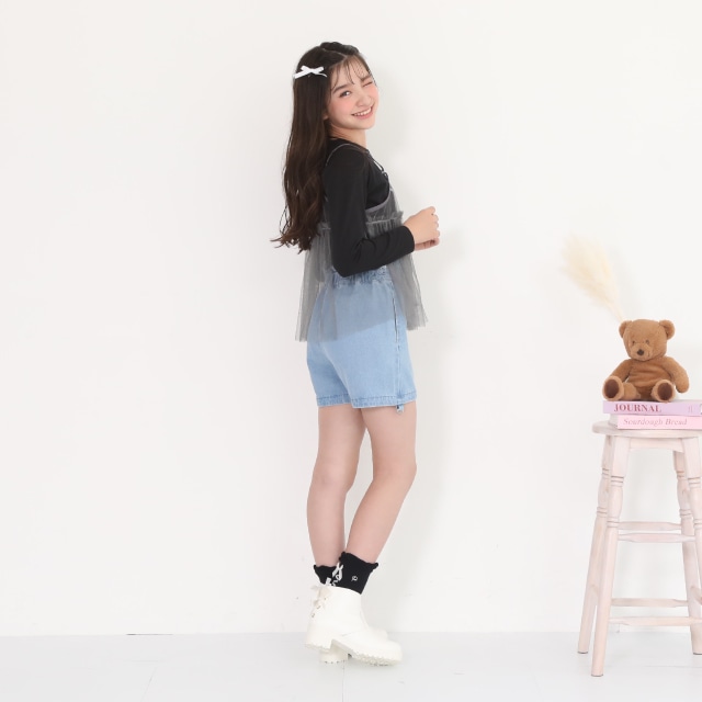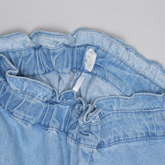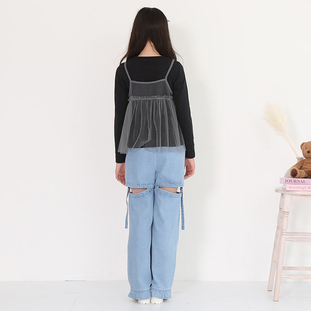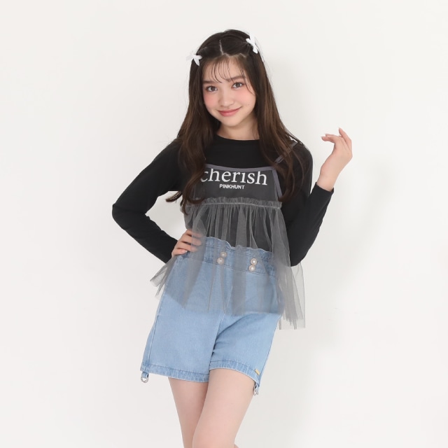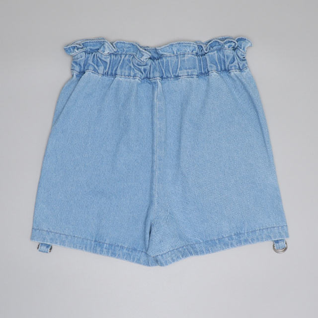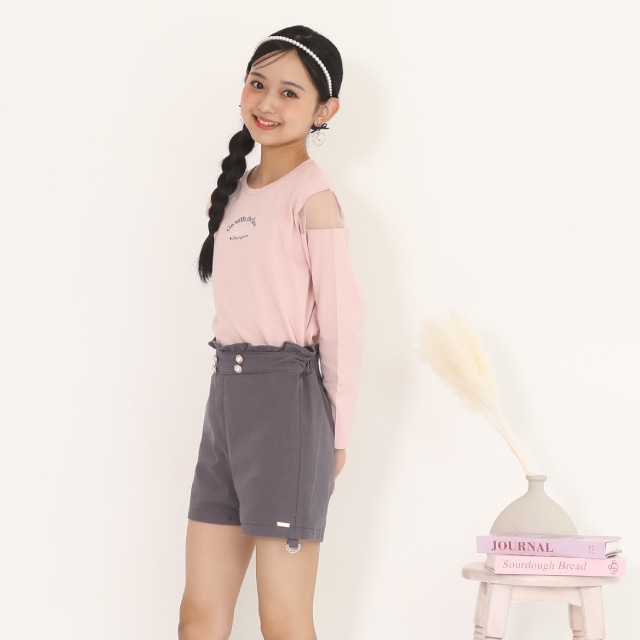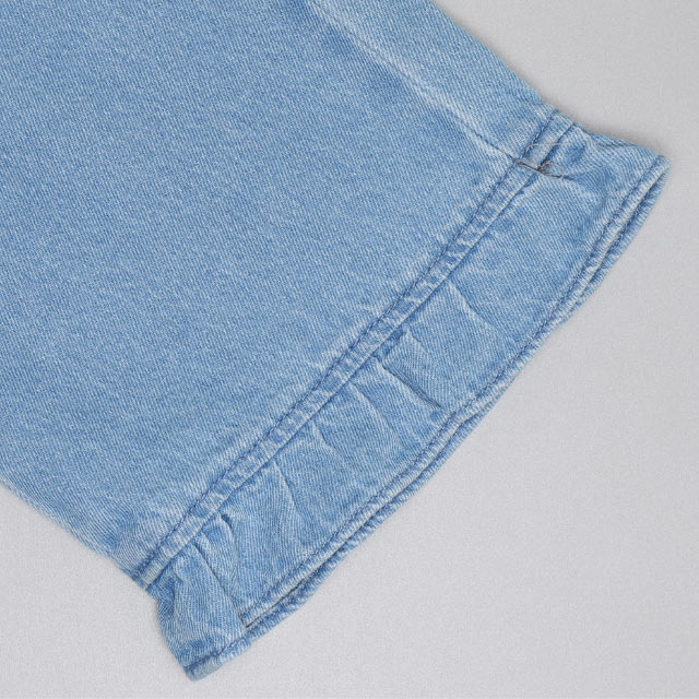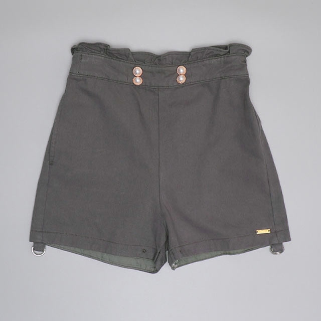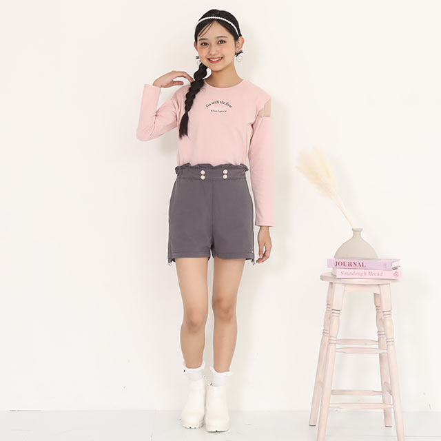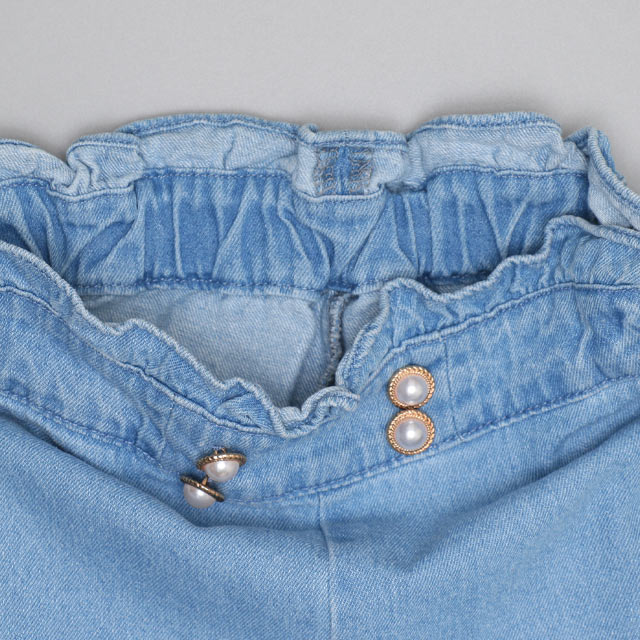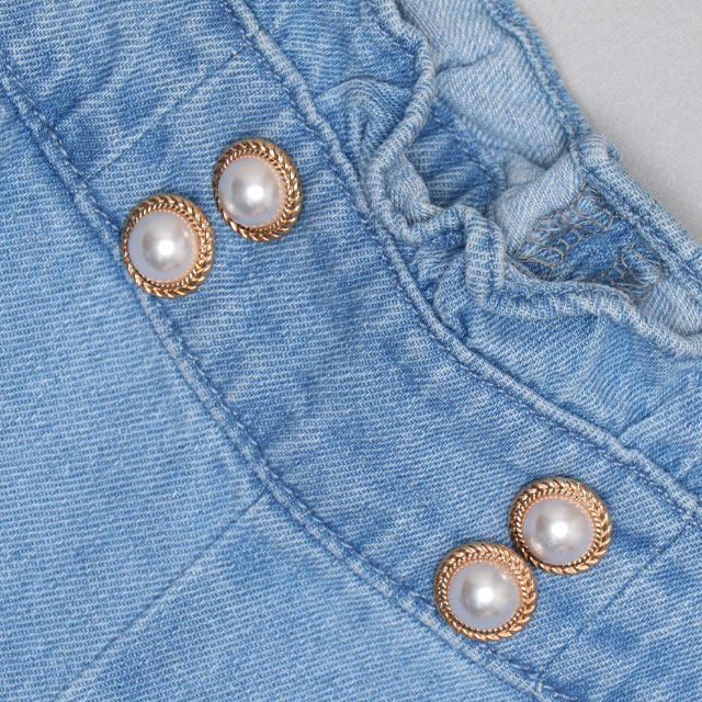 ウエストのパールボタンと裾のフリルがガーリーさをプラス♪