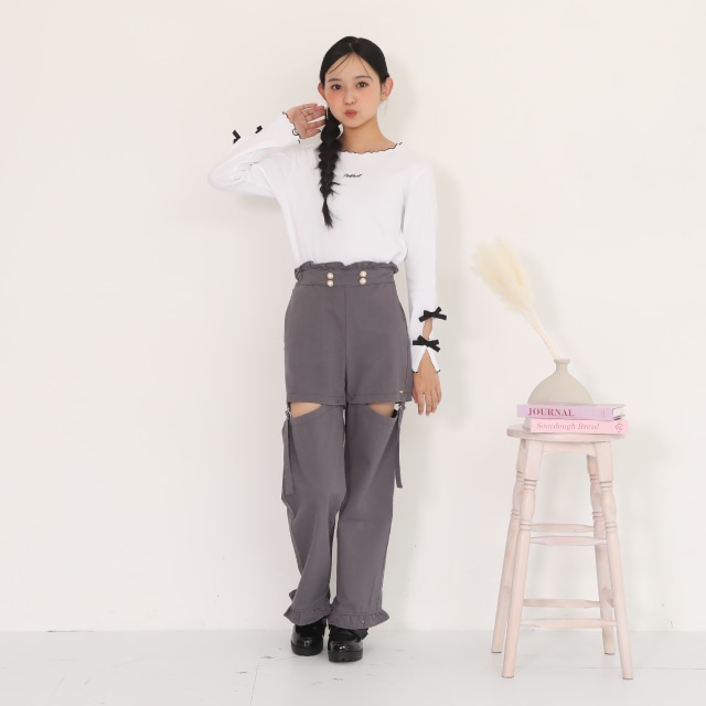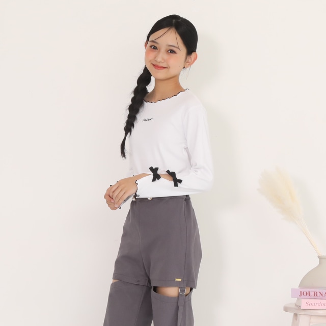 袖口スリット+サテンリボン