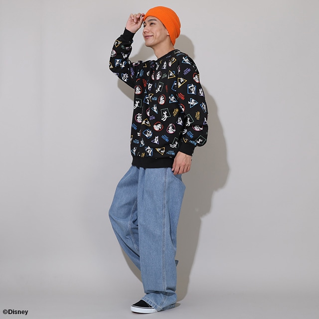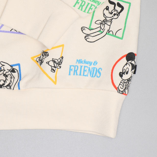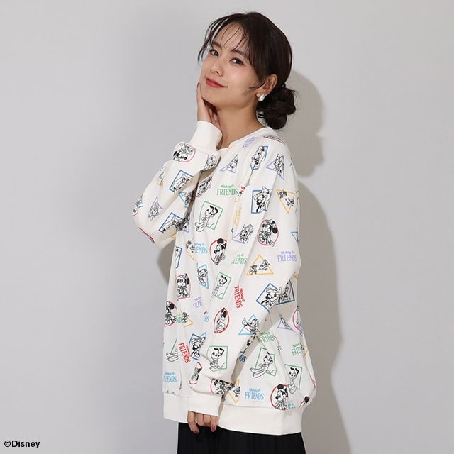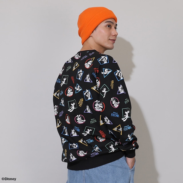 ディズニー人気キャラクターたちの総柄が目を引くスペシャルトレーナー♪