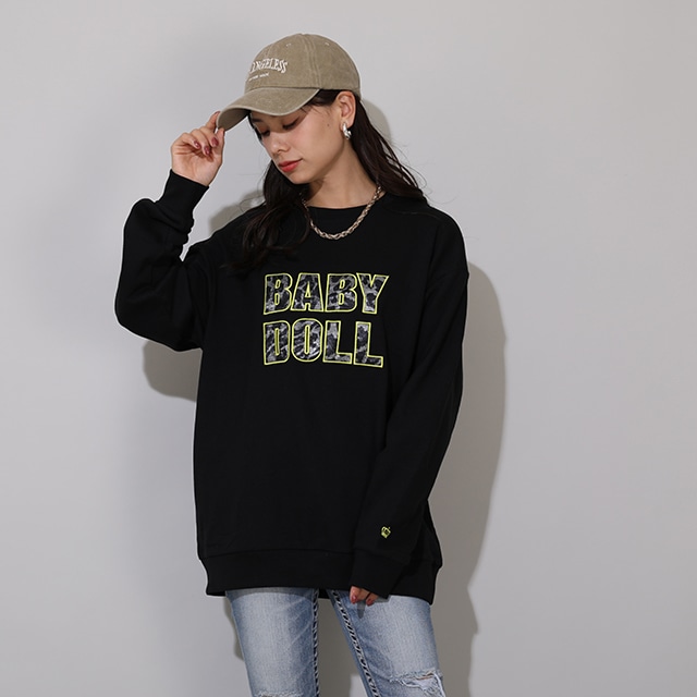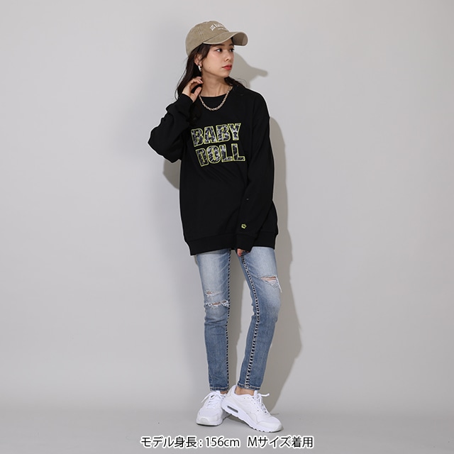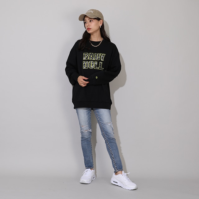 立体感のあるアニマル柄ロゴアップリケがポイントのギャル系スウェットトレーナー♪