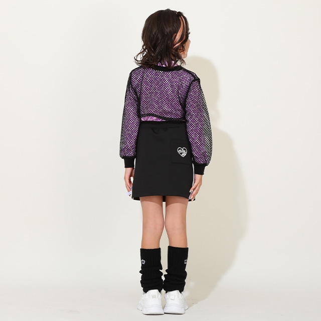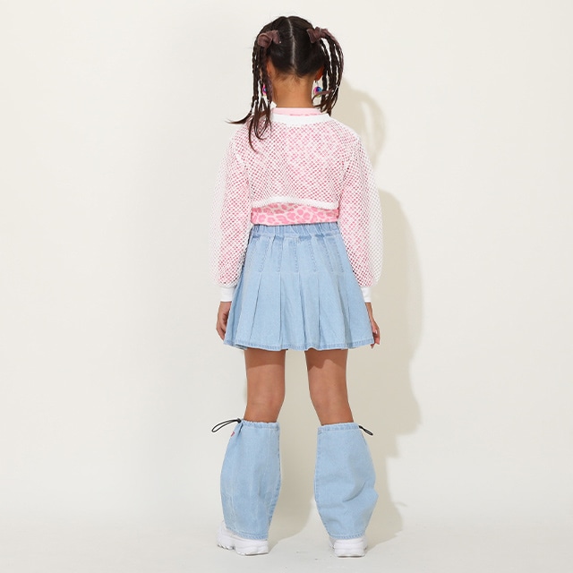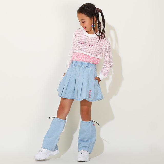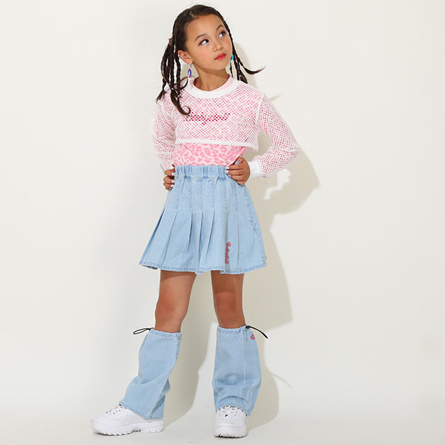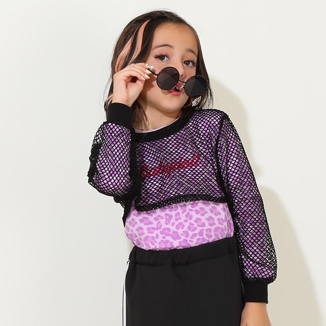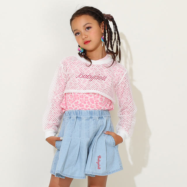 肌なじみの良い天竺素材のトップスにメッシュのロンTを重ね着して、トレンド感MAX◎