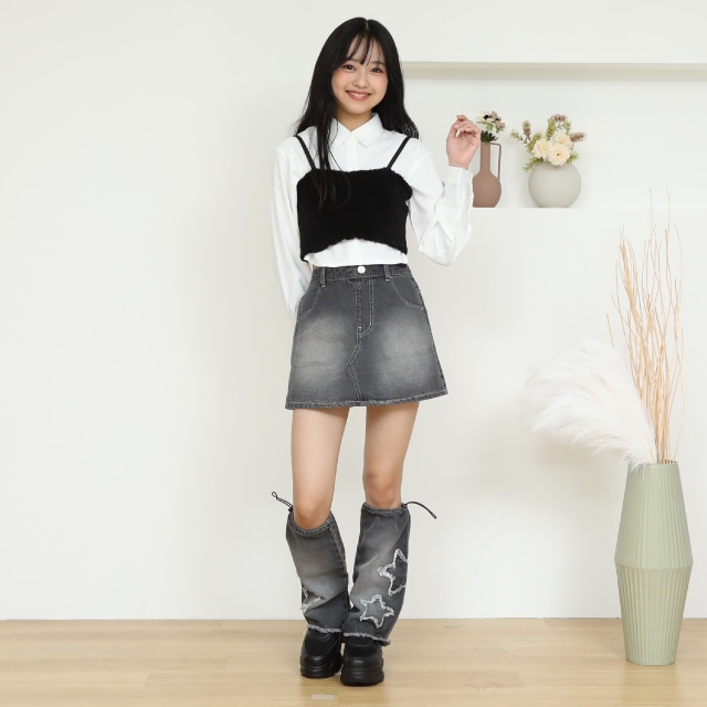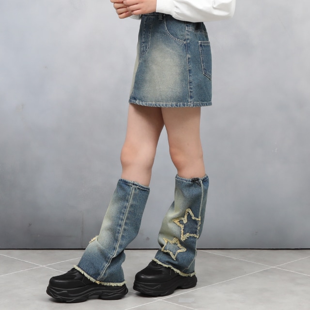 PINKHUNT 星レッグウォーマー付きデニムスカート 0950K
