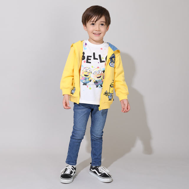 デニムやスウェットとの相性もよく、ユニセックスで使えるから兄妹・姉弟コーデにもぴったり!