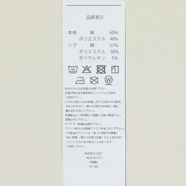 リブ:綿57%,ポリエステル38%,ポリウレタン5%