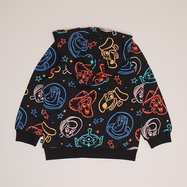 ネオン風のキャラクターアートがおしゃれなTOY STORYのスウェットパーカー♪