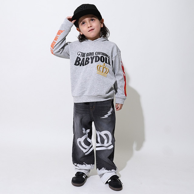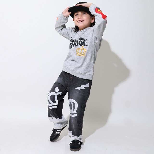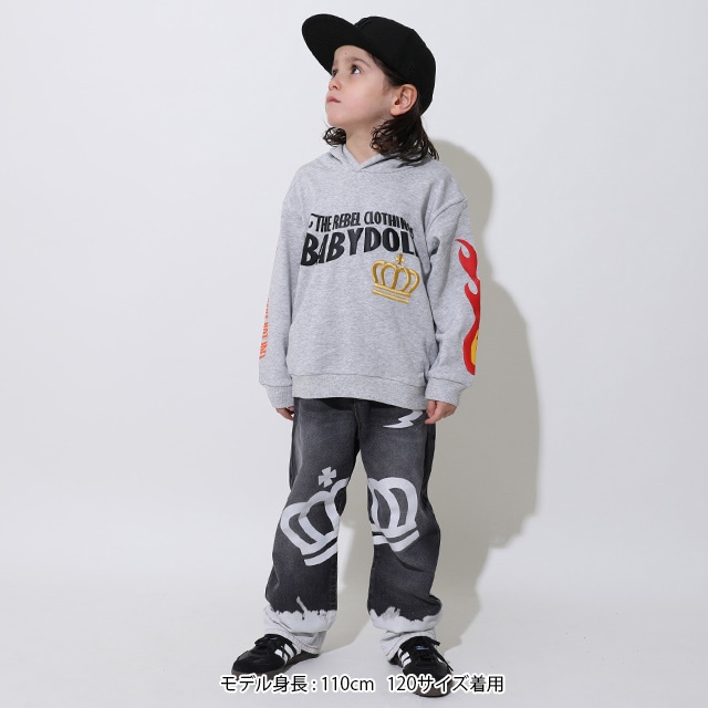 親子お揃い BIG刺繍王冠フレイムパーカー 1052K