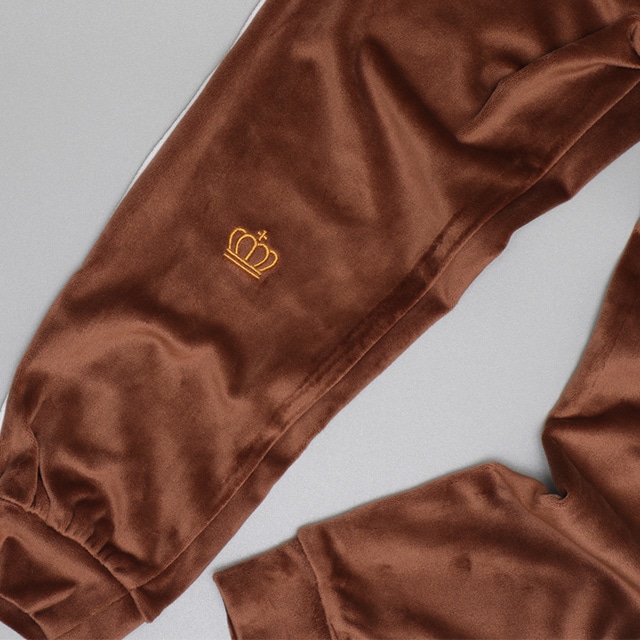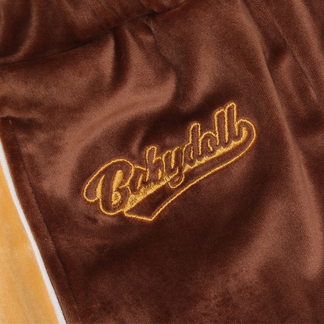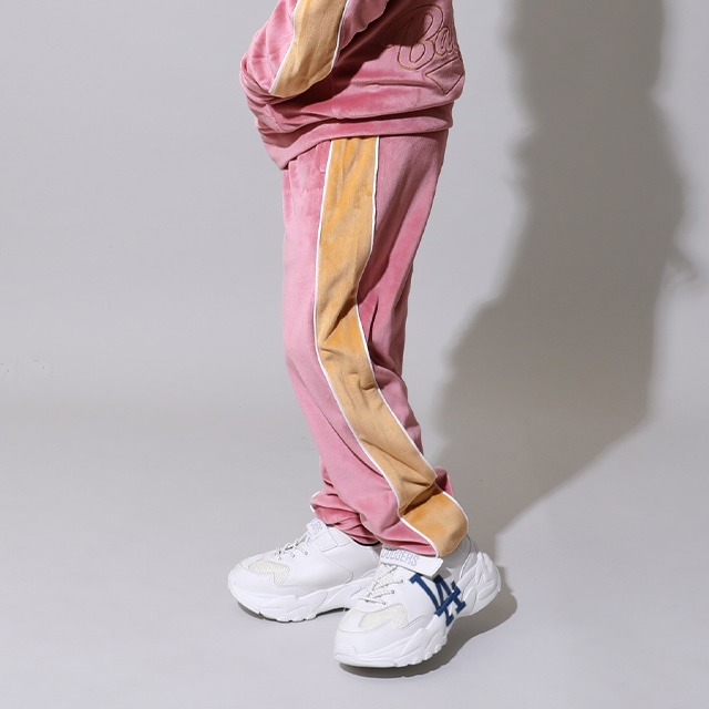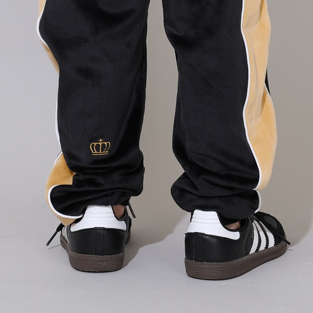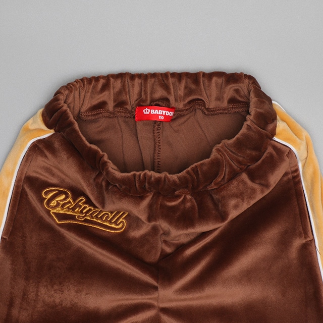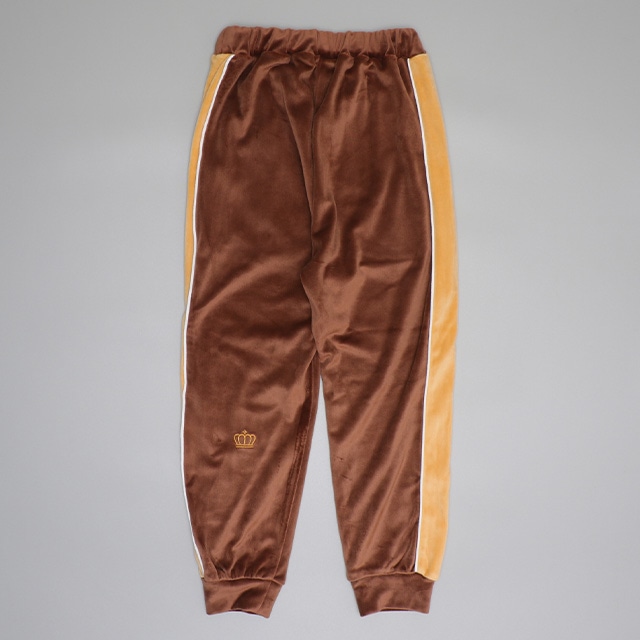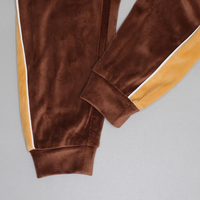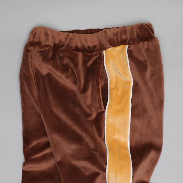 なめらかな手触りと上品な光沢が魅力のベロア素材のジャージパンツ♪