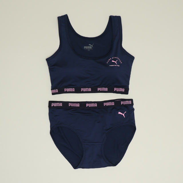 人気スポーツブランド「PUMA」のガールズ用ハーフトップ&ショーツの上下セット。