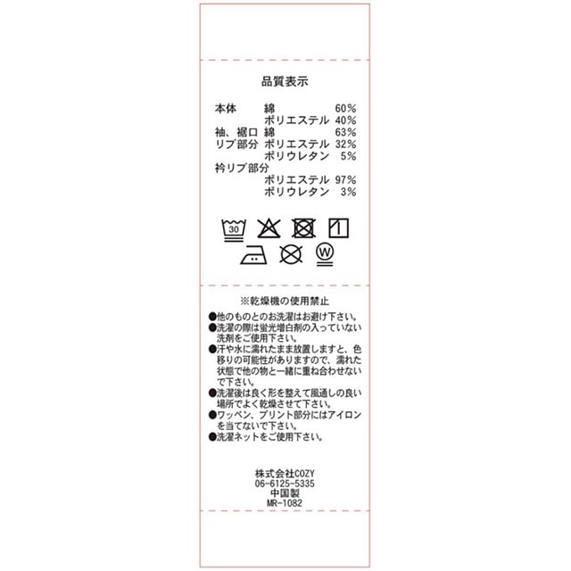 リブ部分:綿63%ポリエステル32%ポリウレタン5%