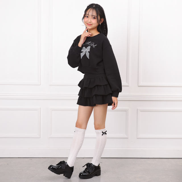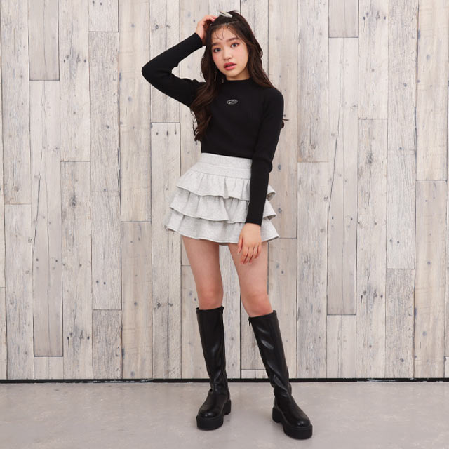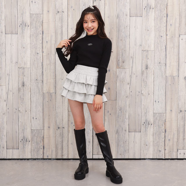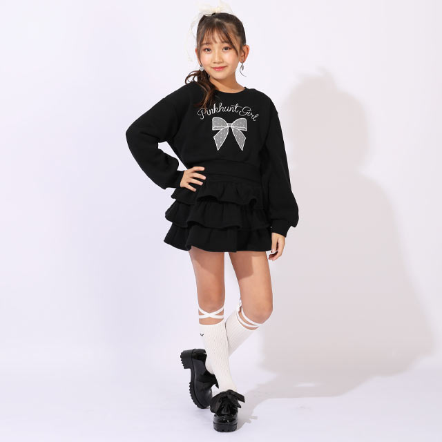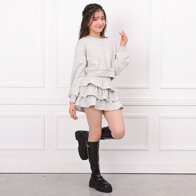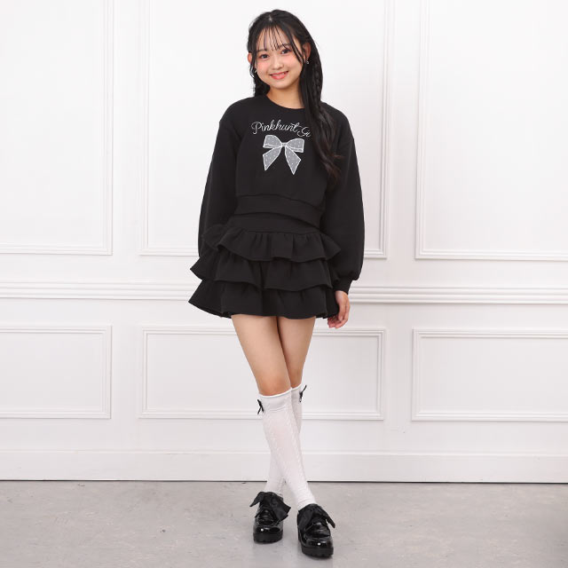 PINKHUNT 裏起毛3段フリルスウェットスカート 1084K (トップス別売り)