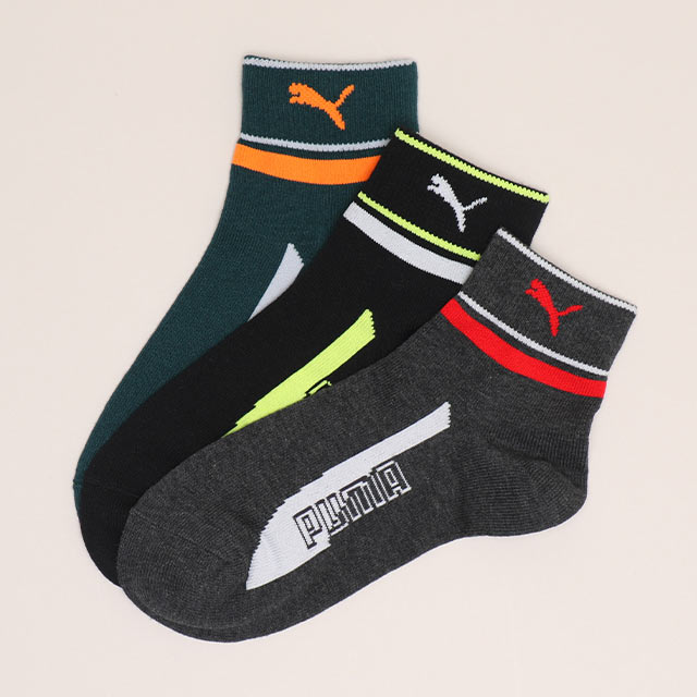人気スポーツブランド「PUMA(プーマ)」のクルーソックス3足セット。