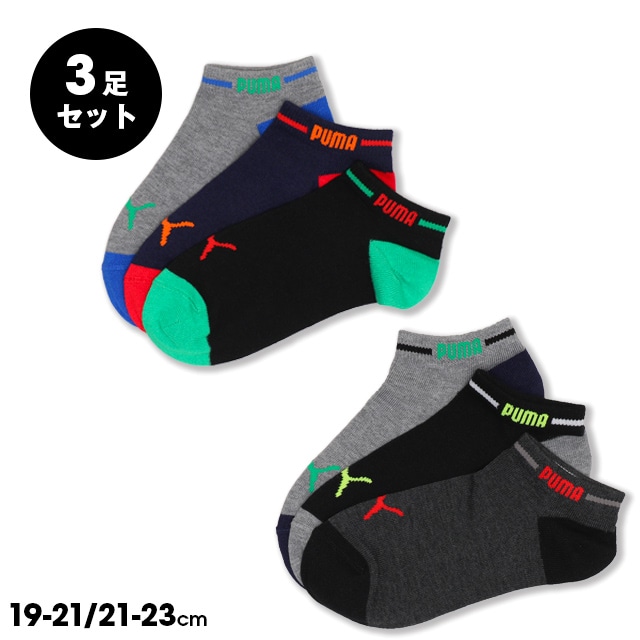 人気スポーツブランド「PUMA(プーマ)」のスニーカーソックス3足セット。