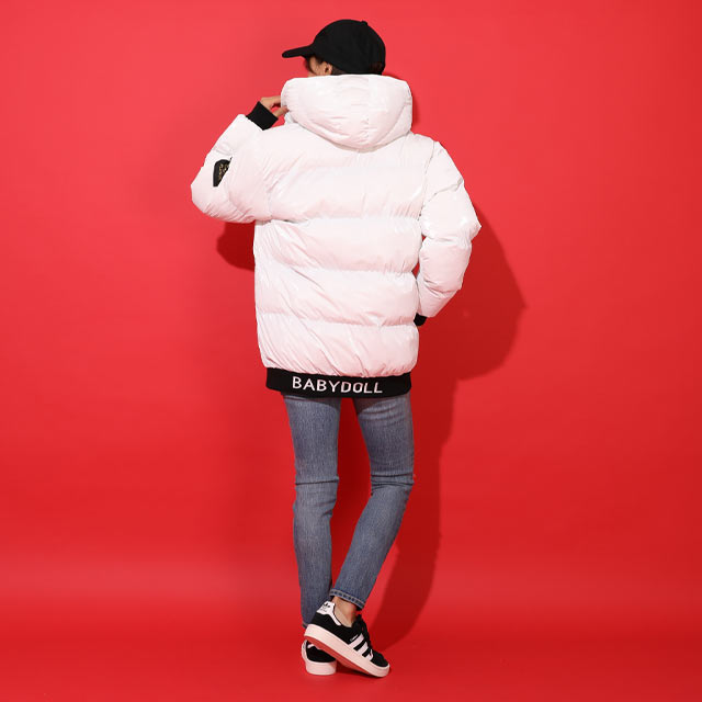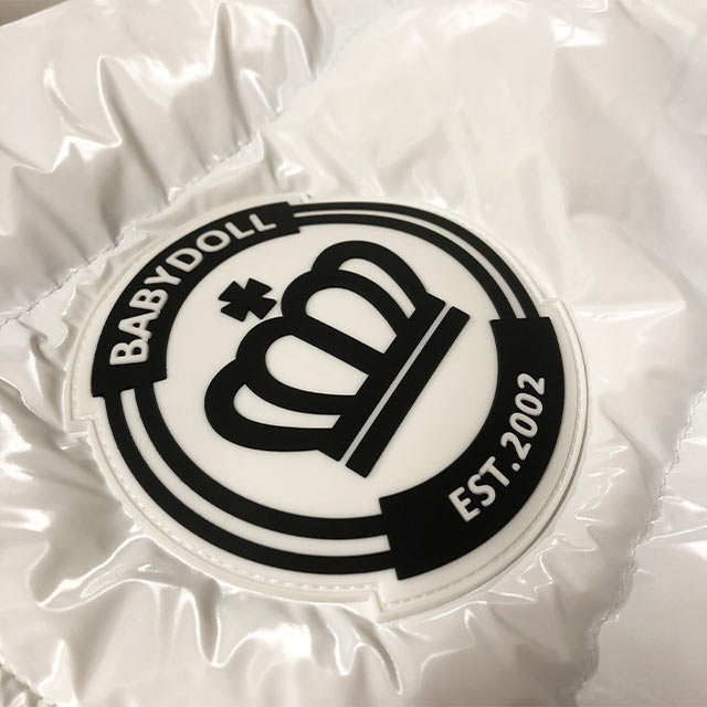 トレンドの肉厚シルエットにツヤ感のあるシレータフタ素材×シリコンワッペンが高見え感たっぷり。