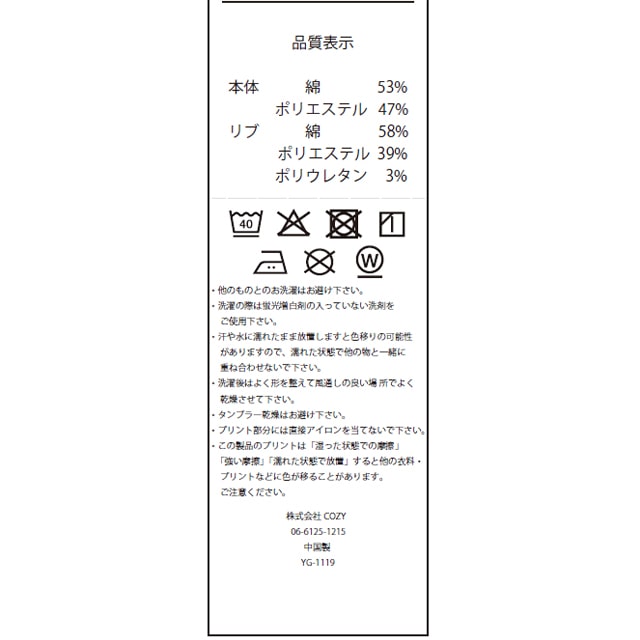 リブ部分:綿58%,ポリエステル39,ポリウレタン3%