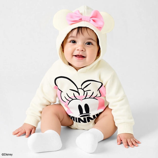 可愛い耳付きのフードが主役級のベビーロンパース♪