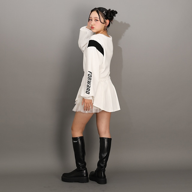 ホワイト・チャコールはセットアップになるスカートと合わせたコーデもオススメ◎