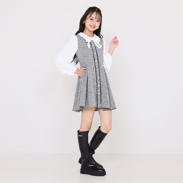 11/10NEW PINKHUNT ツイードレイヤードワンピース 1154K
