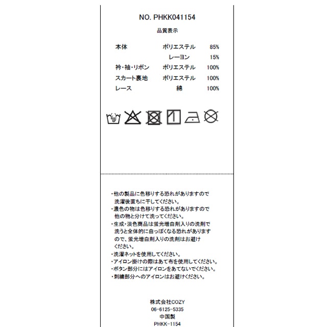 衿・袖・リボン・スカート裏地:ポリエステル100%