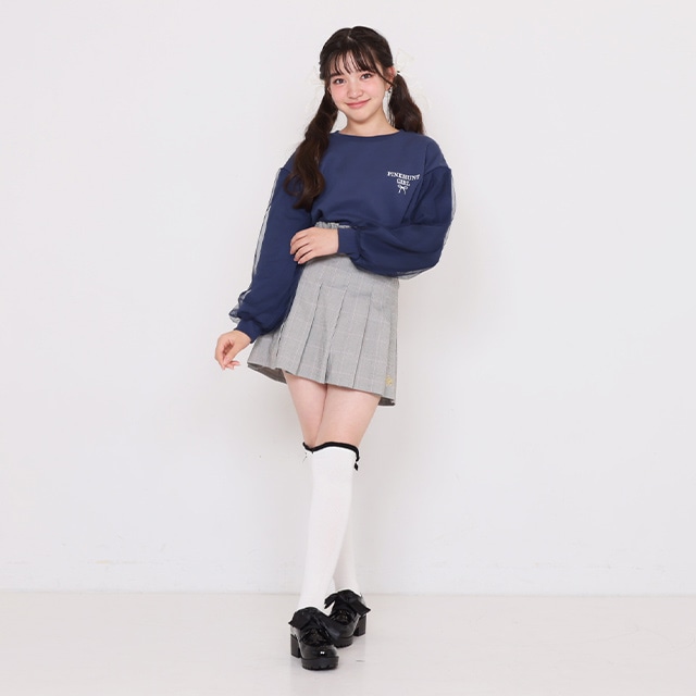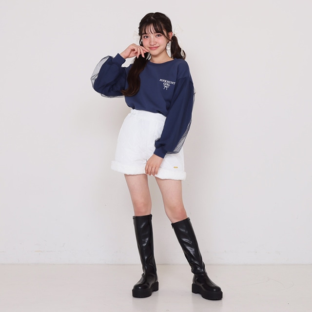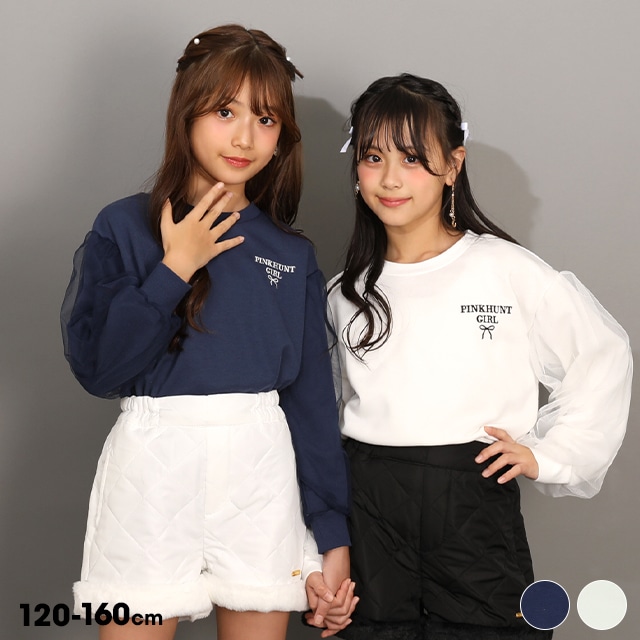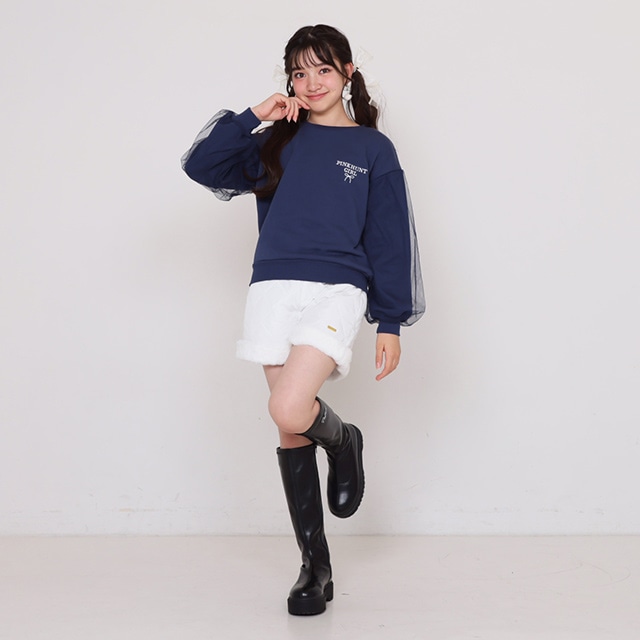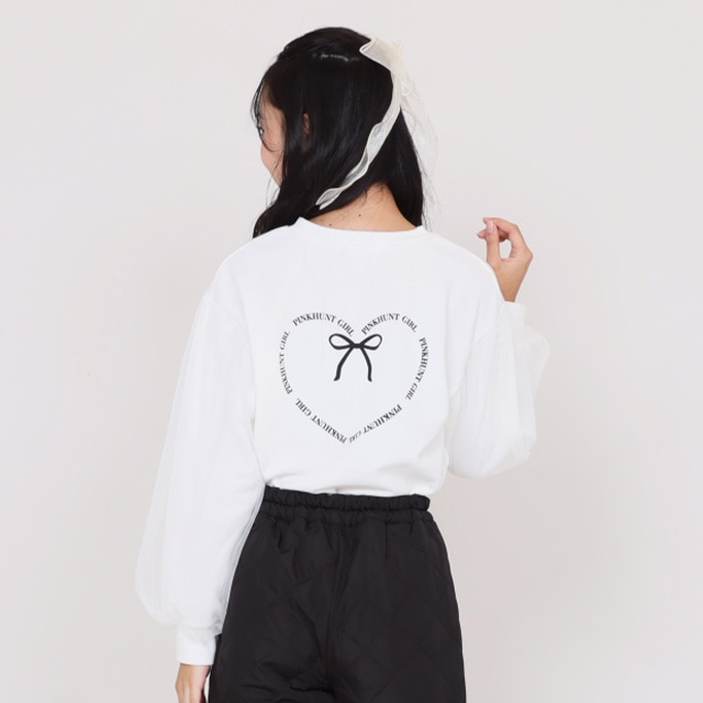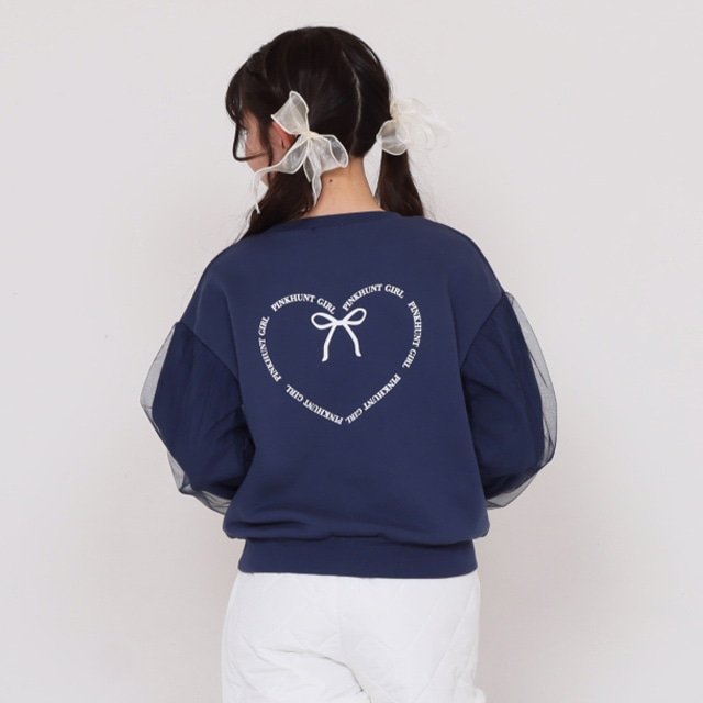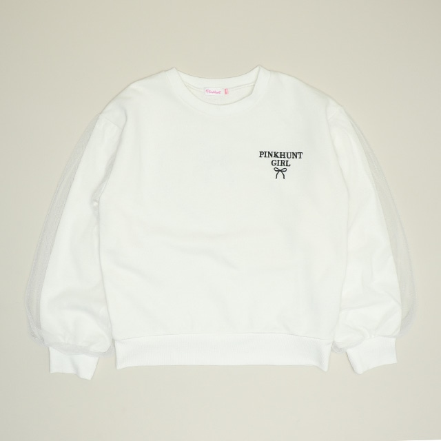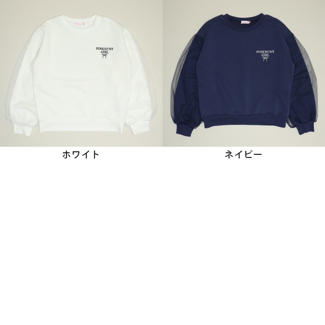 11/14NEW PINKHUNT 袖チュール重ねフラワートレーナー 1161K