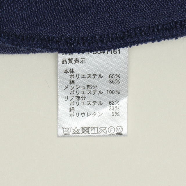 リブ部分:ポリエステル62%,綿33%,ポリウレタン5%