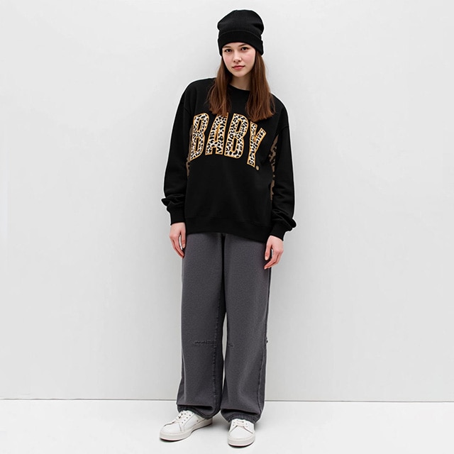 ヒョウ柄×BABYDOLLのBIGロゴがインパクト抜群のスウェットトレーナー♪