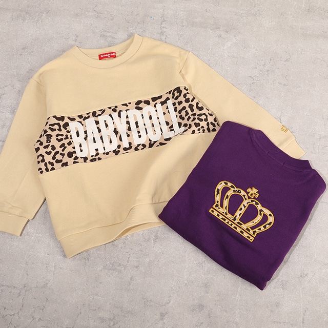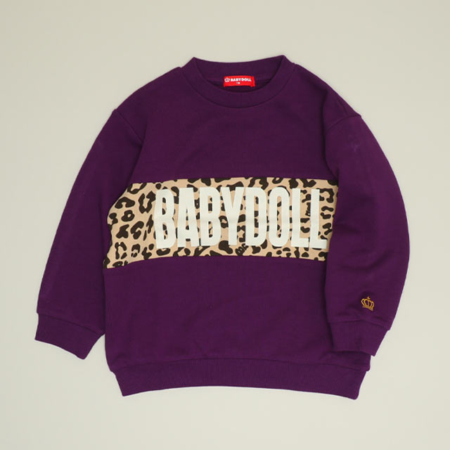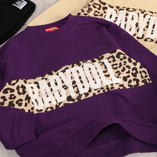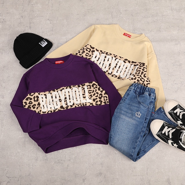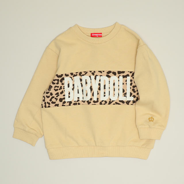 ヒョウ柄×BABYDOLLロゴがおしゃれで目を惹くスウェットトレーナー♪