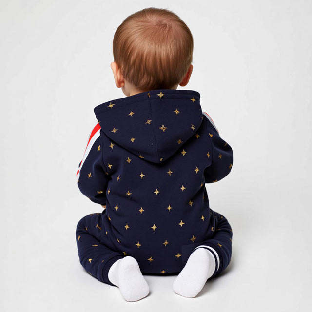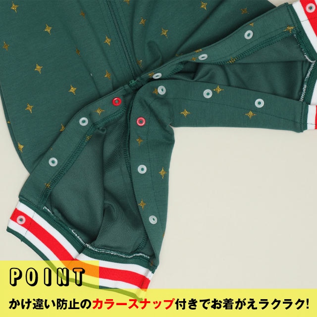 前開きファスナーと股下のスナップボタン仕様なので、お着替えもおむつ替えもスムーズ楽ちん♪