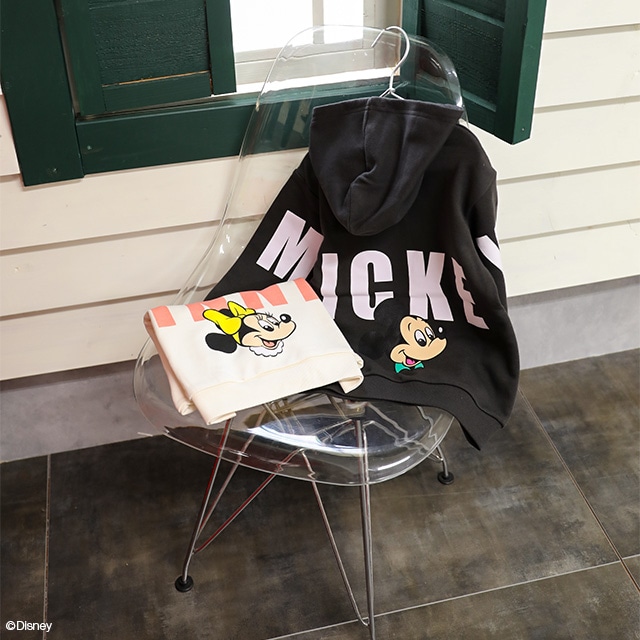 Disneyキャラクター×ロゴのバックプリントが目を惹くスウェットパーカー♪