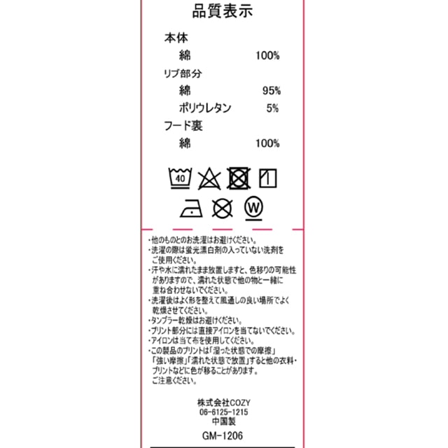 フード裏:綿100%