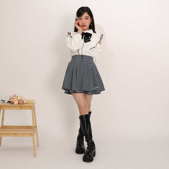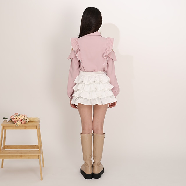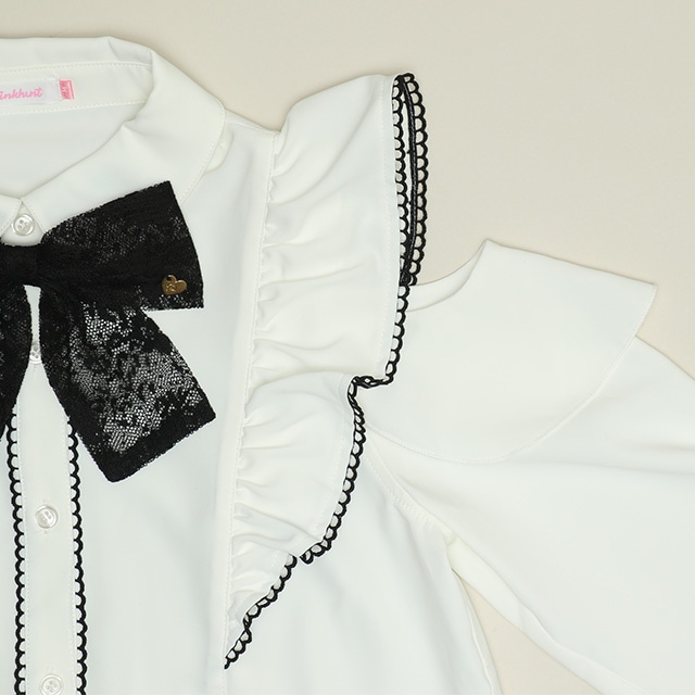 12/8NEW PINKHUNT レースリボン付き肩あきシャツ 1223K