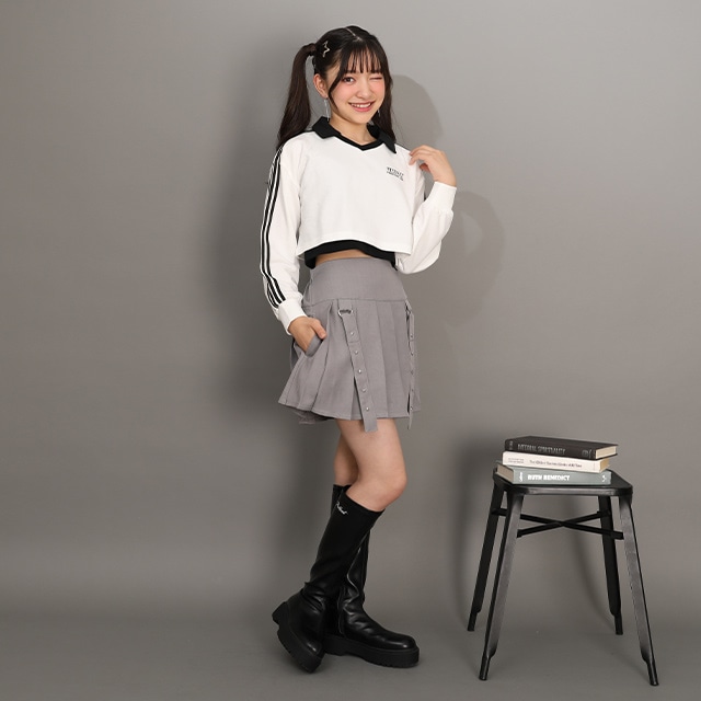 12/17NEW PINKHUNT 星スタッズベルトプリーツスカート 1227K