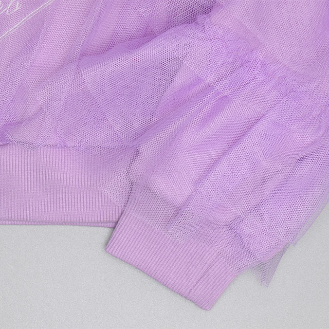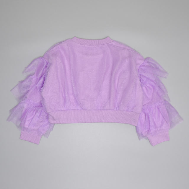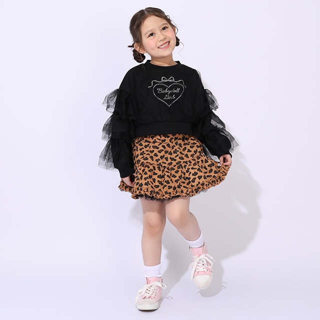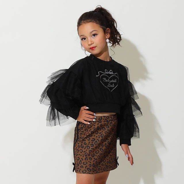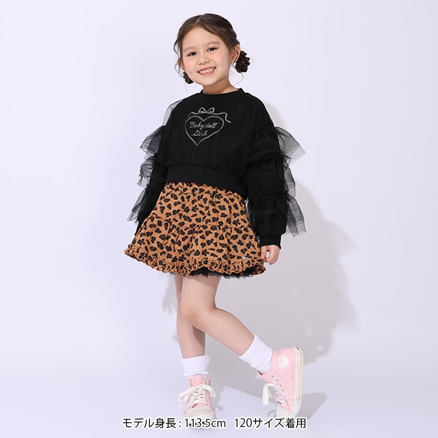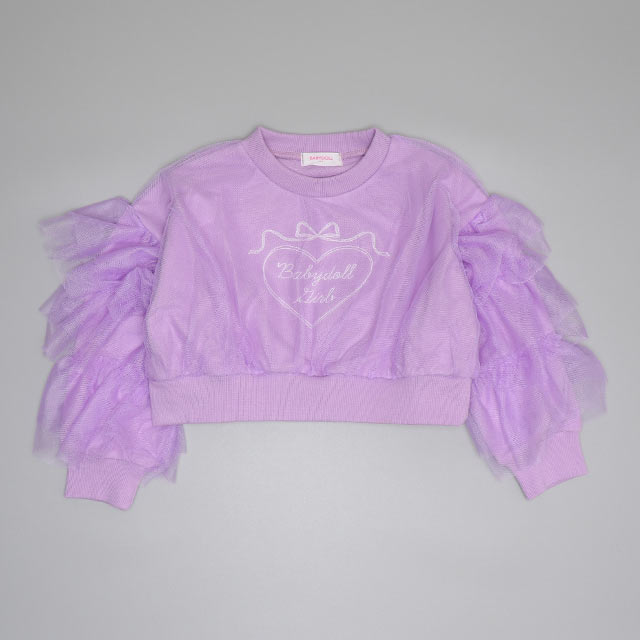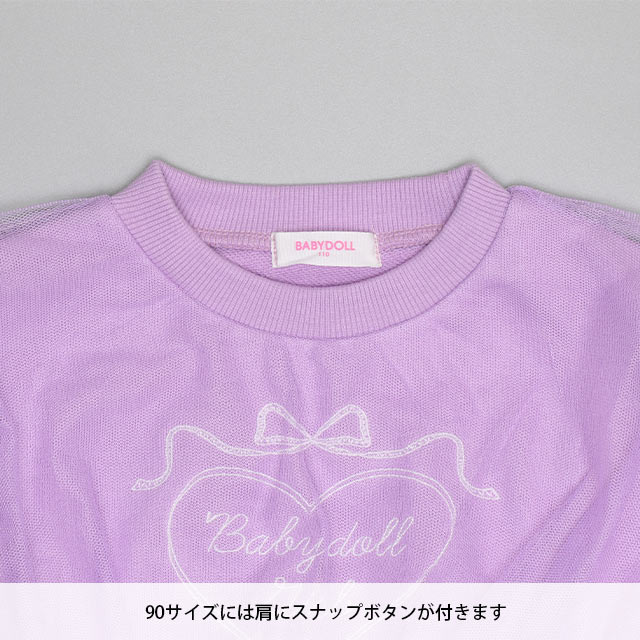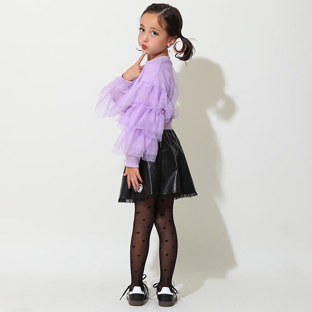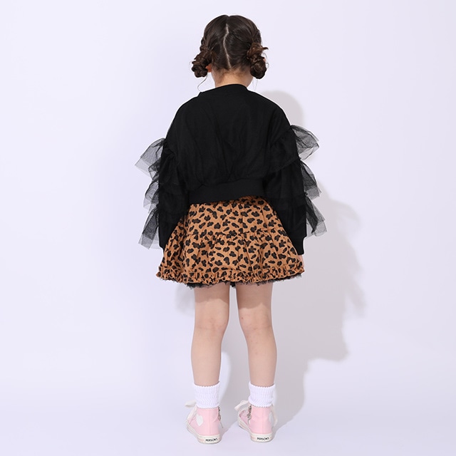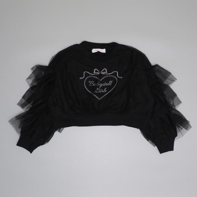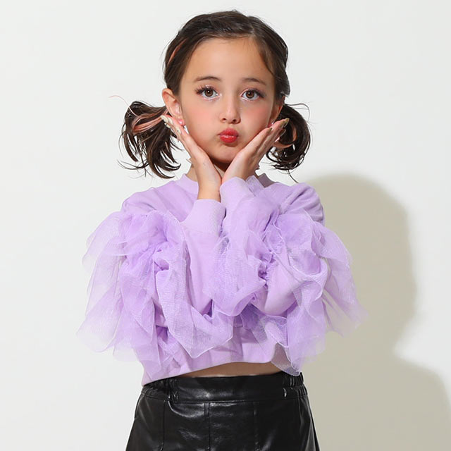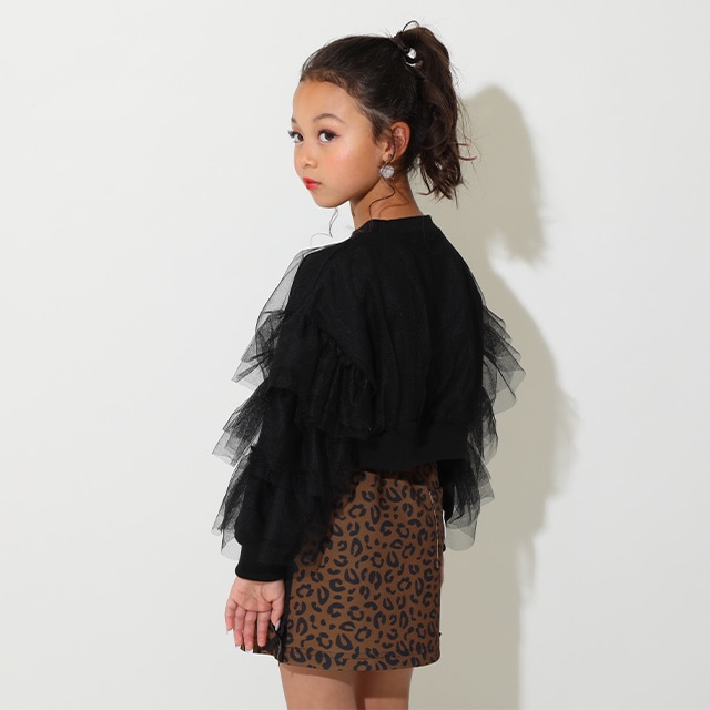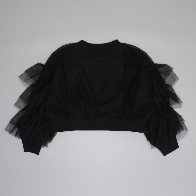 袖:チュールフリルたたき付け(2枚×3段、ギャザー)