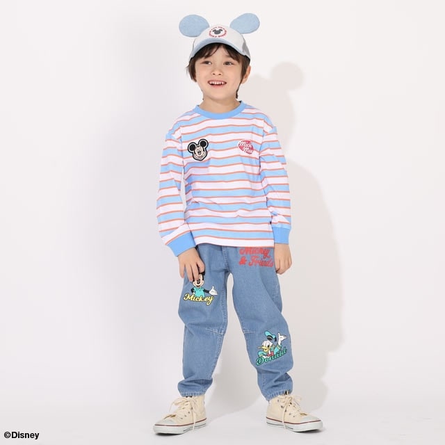 1/16NEW 親子お揃い ディズニー ワッペン付ボーダー柄ロンT 1257K