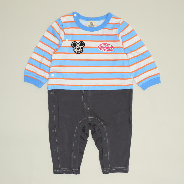 1/16NEW ディズニー ワッペン付ボーダー柄ロンパース 1259B