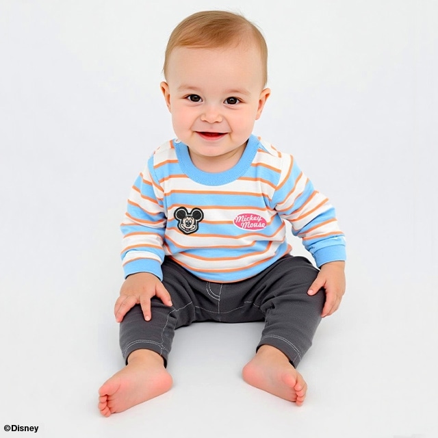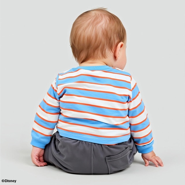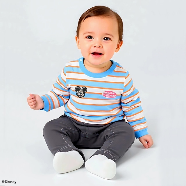 トレンドのボーダー柄が春らしいDisneyの長袖ロンパース★