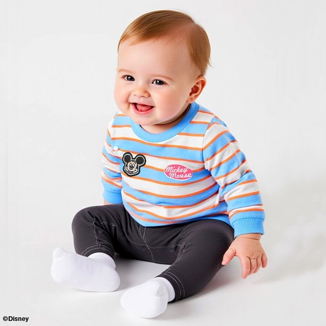 やわらかい肌ざわりの天竺素材は、赤ちゃんもさらっと快適な着心地◎