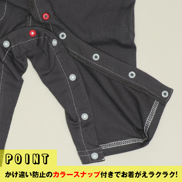 襟部分から右脇、股部分にかけてスナップボタンで開閉